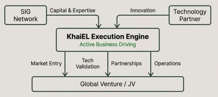 KhaiEL directly manages technology validation, market entry, and partnership development.Co-Founder Participation: